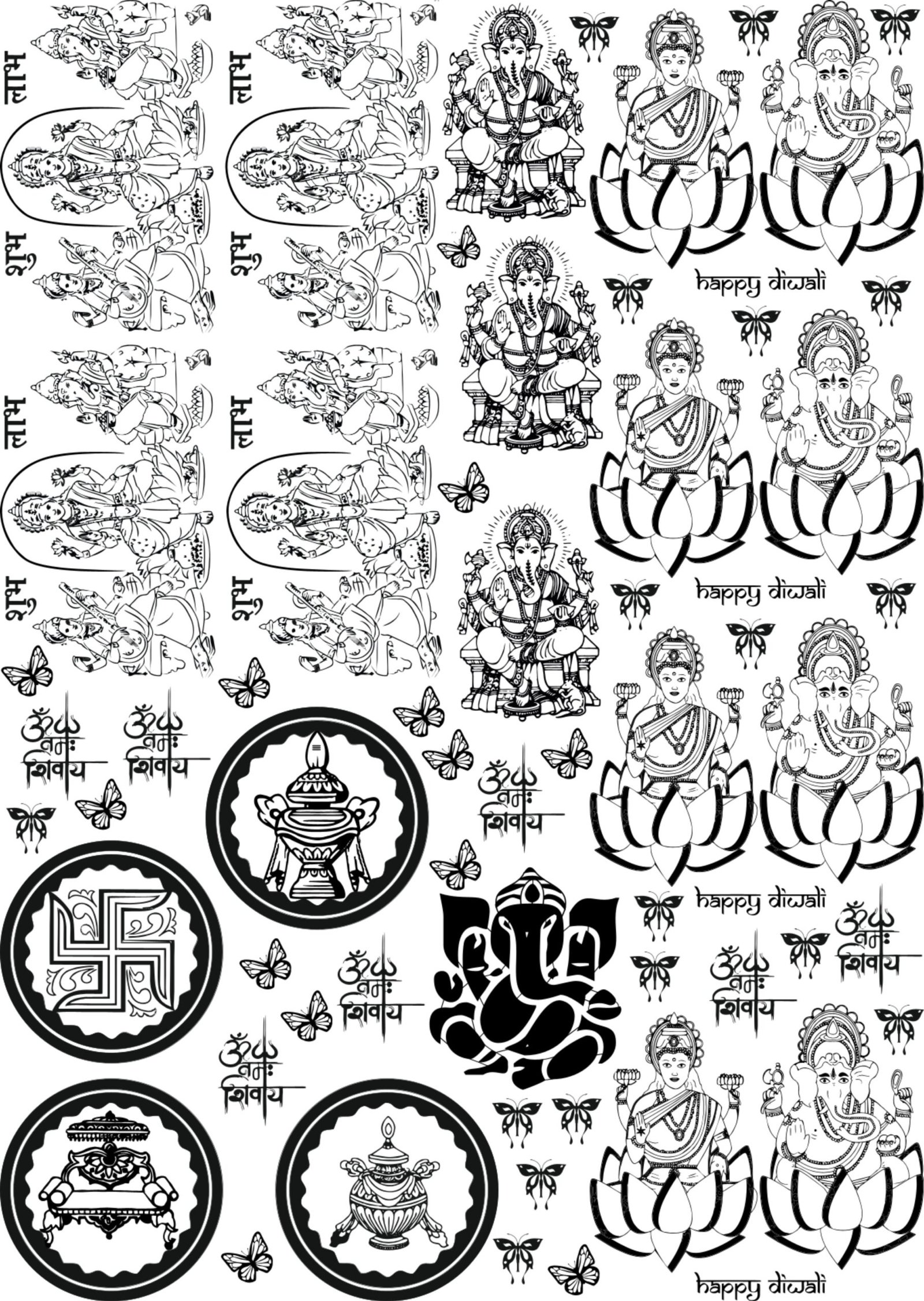 Make use of the popular 10th Sheets All Diwali EP Metal Stickers featuring Saraswati Mata, Ganesh, Laxmi, and more ποΈπΏ. These metallic stickers are expertly made on PET film using technology, giving it a glossy, luxurious finish that exudes sophisticated wealth.