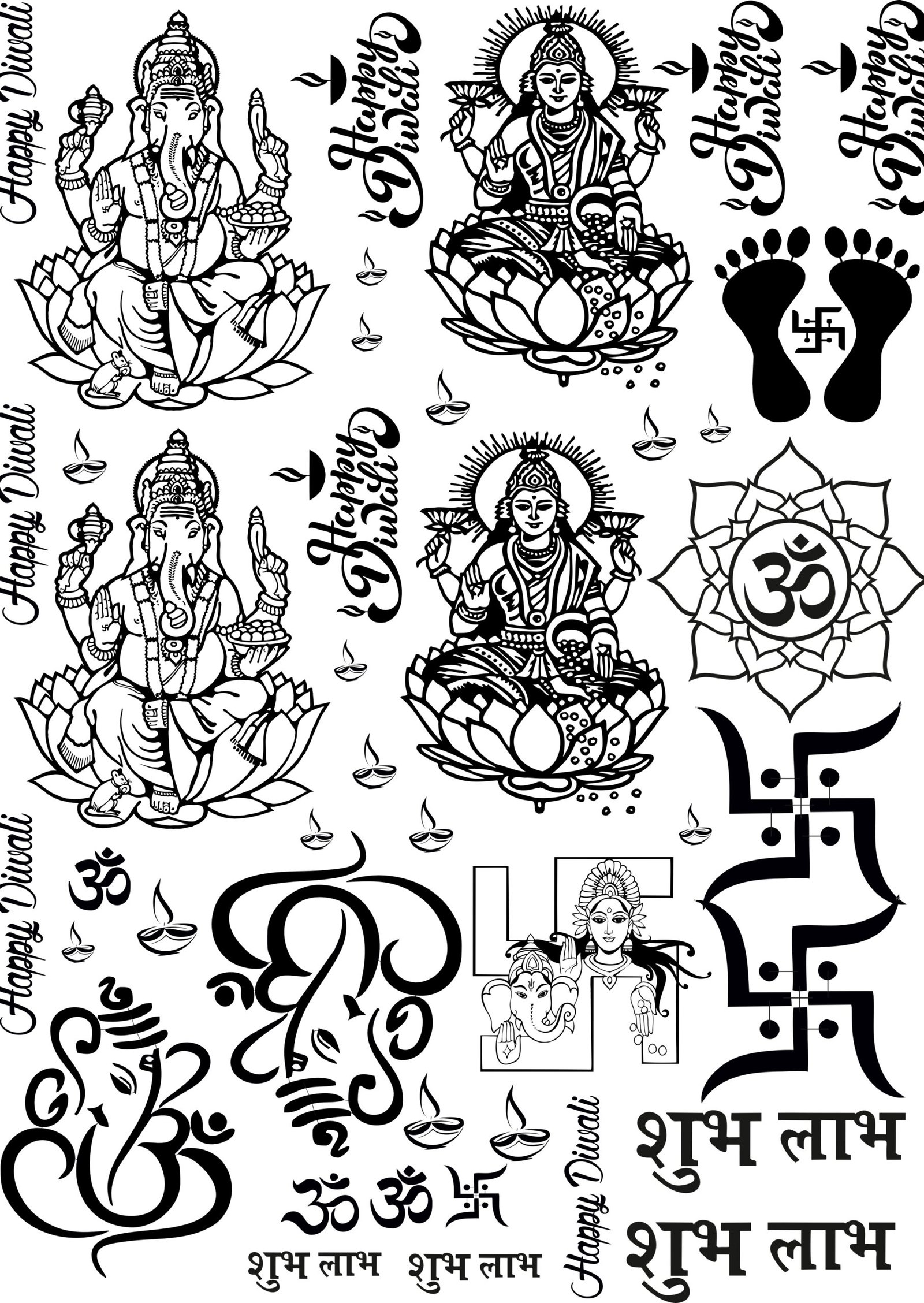 Use the popular 4th Sheets All Diwali EP Metal Stickers β Mata Charan, Laxmi Mata, Ganesh, OM, & Moreπ«π to commemorate the festival of lights. These metallic stickers are expertly created on PET film using technology, giving it a glossy, luxurious finish that exudes sophisticated wealth.