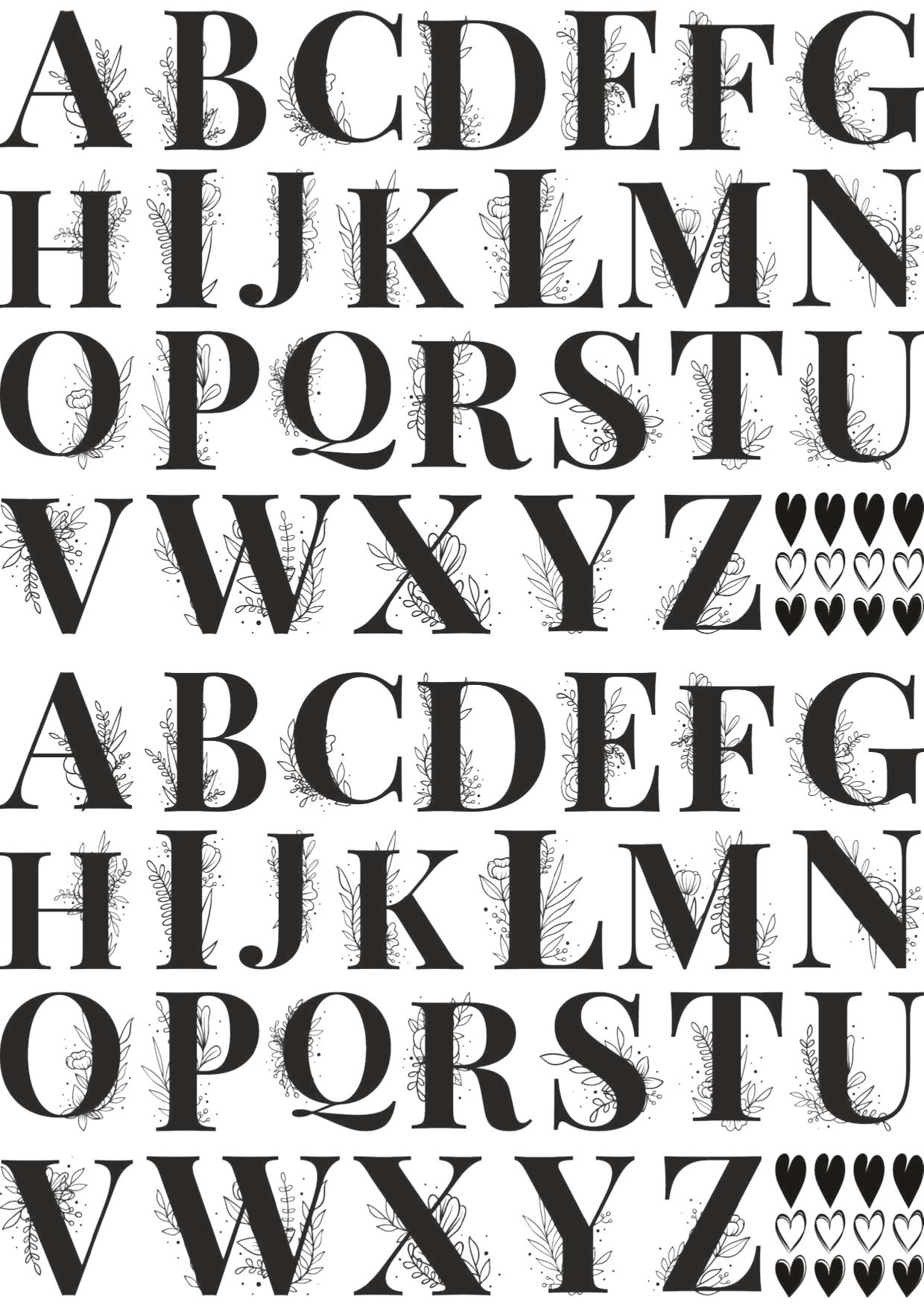 Classic Floral Serif Alphabet EP Metal Stickers are created for users who prefer strong, timeless typography with a decorative edge. Each alphabet letter is designed in a bold serif style, offering excellent readability while maintaining a refined aesthetic. The subtle floral textures within the letterforms add character without distracting from the clarity of the alphabet.