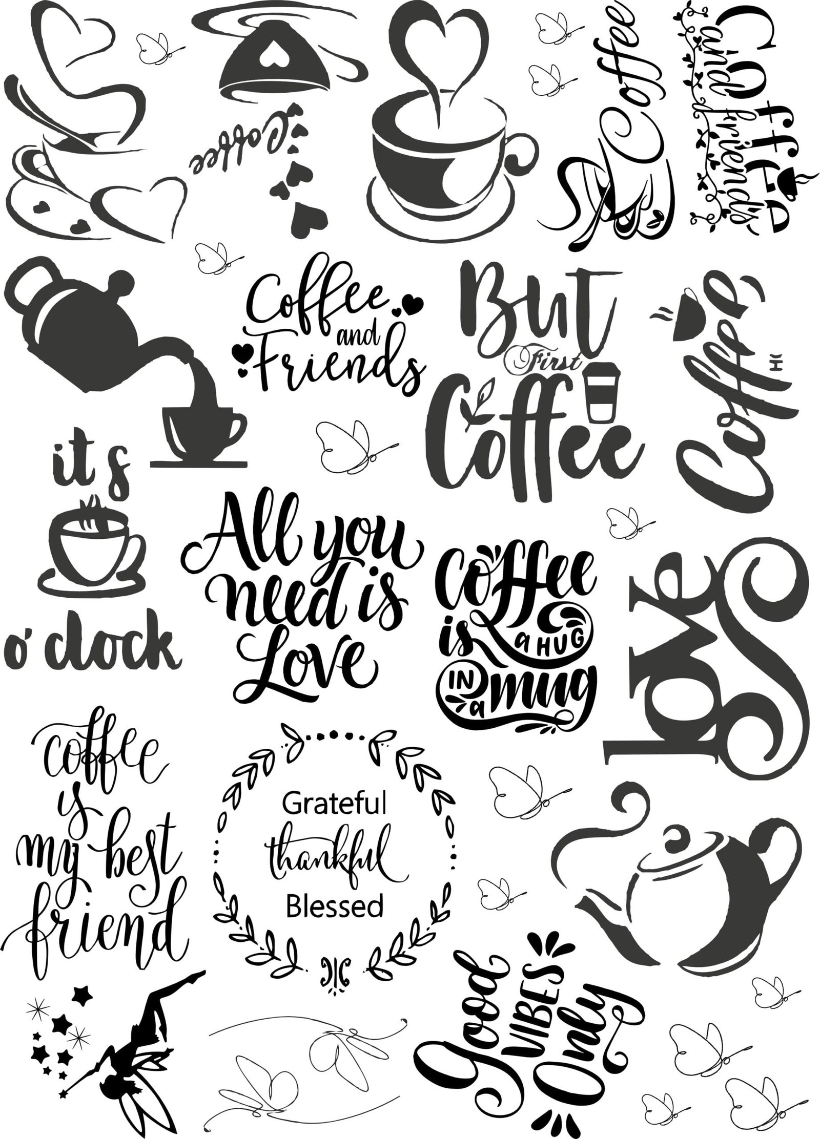 Coffee Quotes EP Metal Sticker Sheet for Cafe and Kitchen Decor