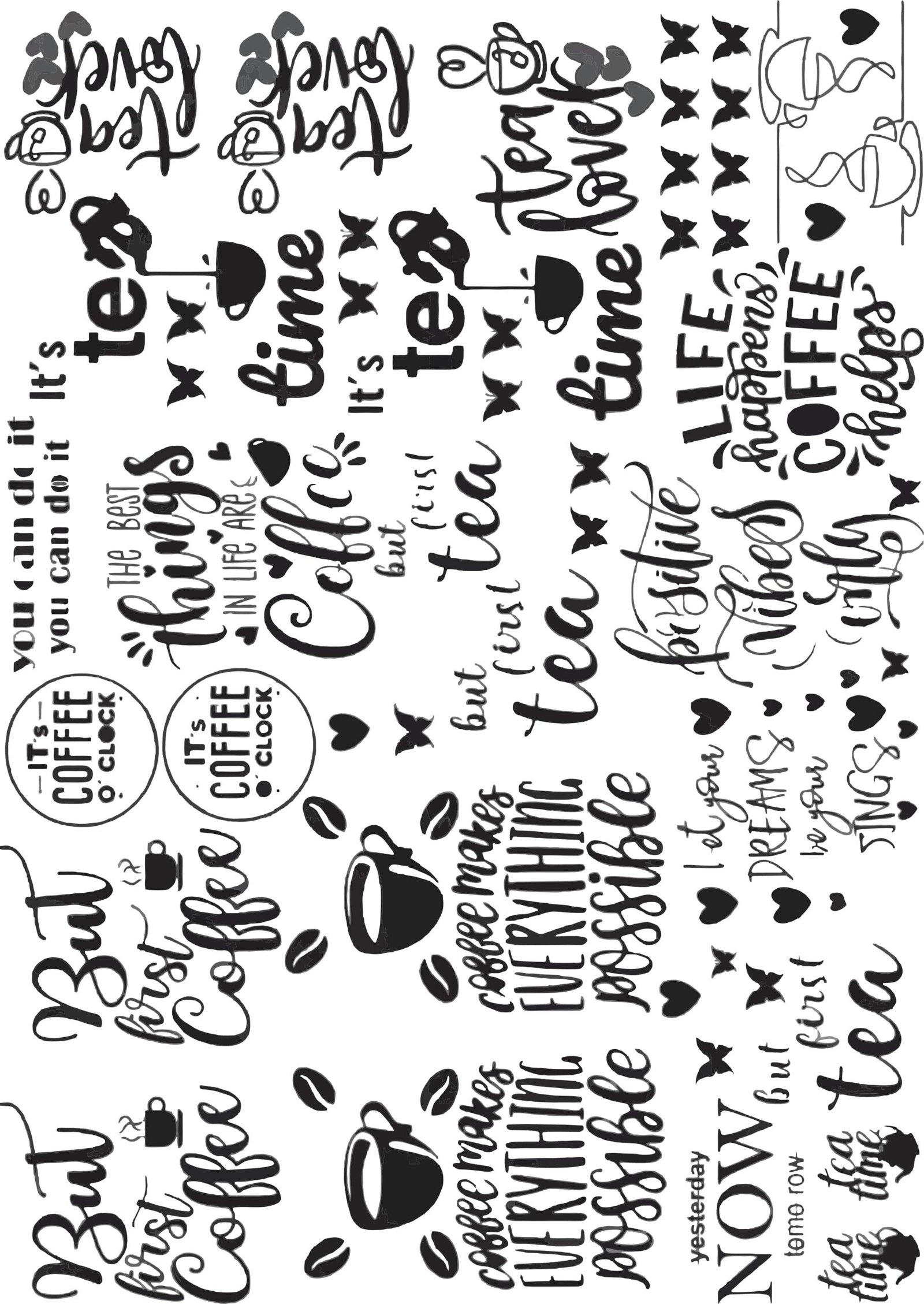 Coffee and Tea Quotes EP Metal Sticker Sheet for Cafe and Kitchen Decor