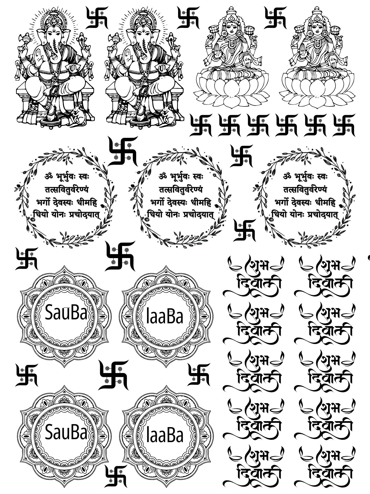 Make use of the Ganesh, Laxmi, Swastik, and Rangoli Deepawali Collection EP Metal Sticker Sheets in Rose Gold and Copper πͺπΏ These metallic stickers are expertly made on PET film using technology, giving it a glossy, luxurious finish that exudes sophisticated wealth.