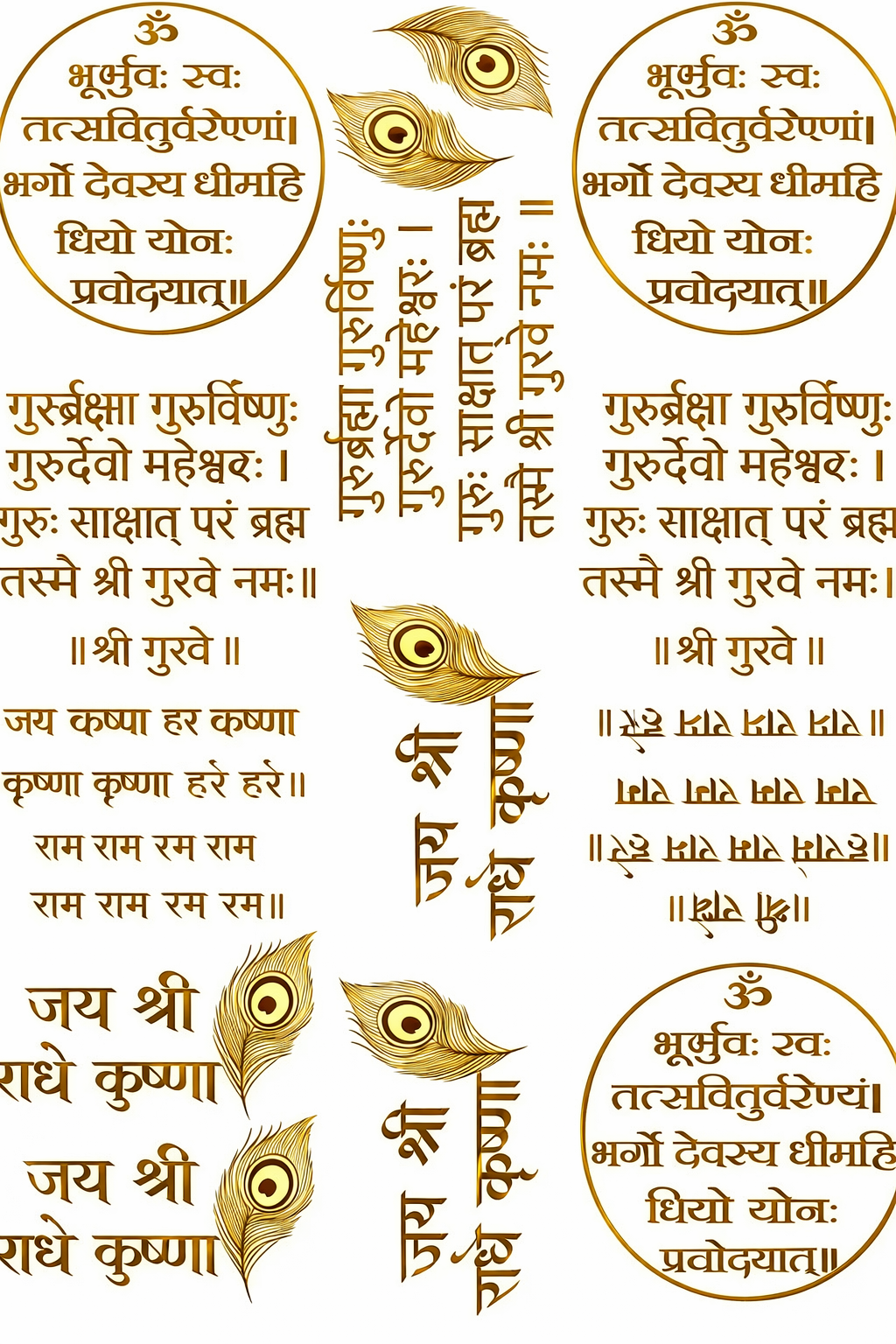 Gayatri Mantra and Radha Krishna EP Metal Sticker Sheet with Sacred Sanskrit Chants