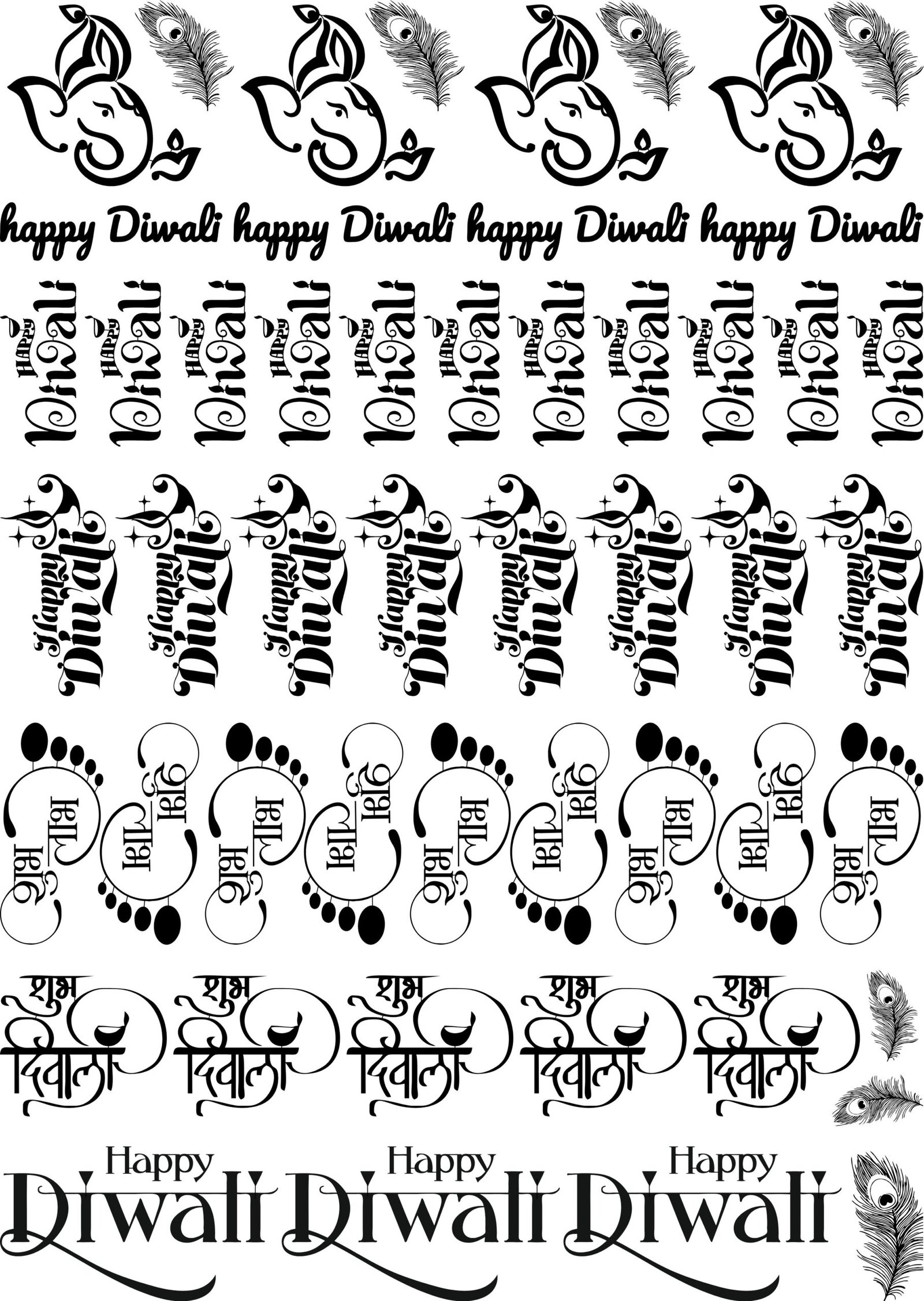 Luxury & Shining EP Metallic Stickers Sheet – Happy Diwali Quotes, God’s Stickers & Feather πͺβ¨