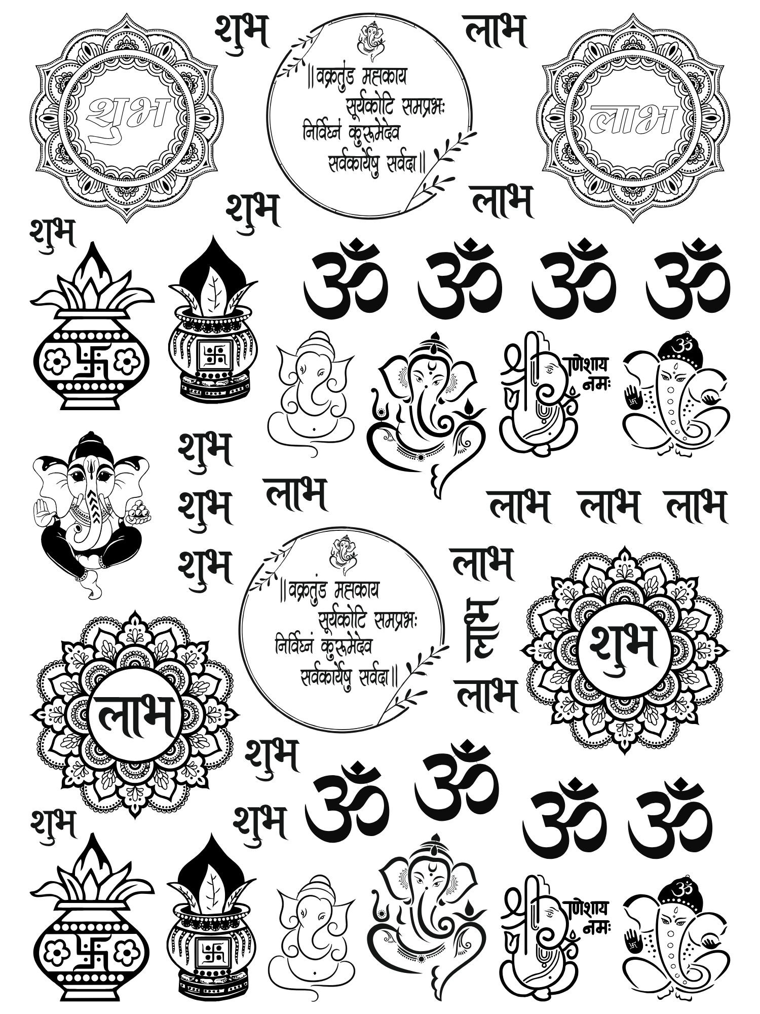 Festive & Religious Décor: Mantra, Om, Shubh Labh, & Ganesh Diwali Collection EP Metal Stickers Sheets Gold & Silver🕉️📿