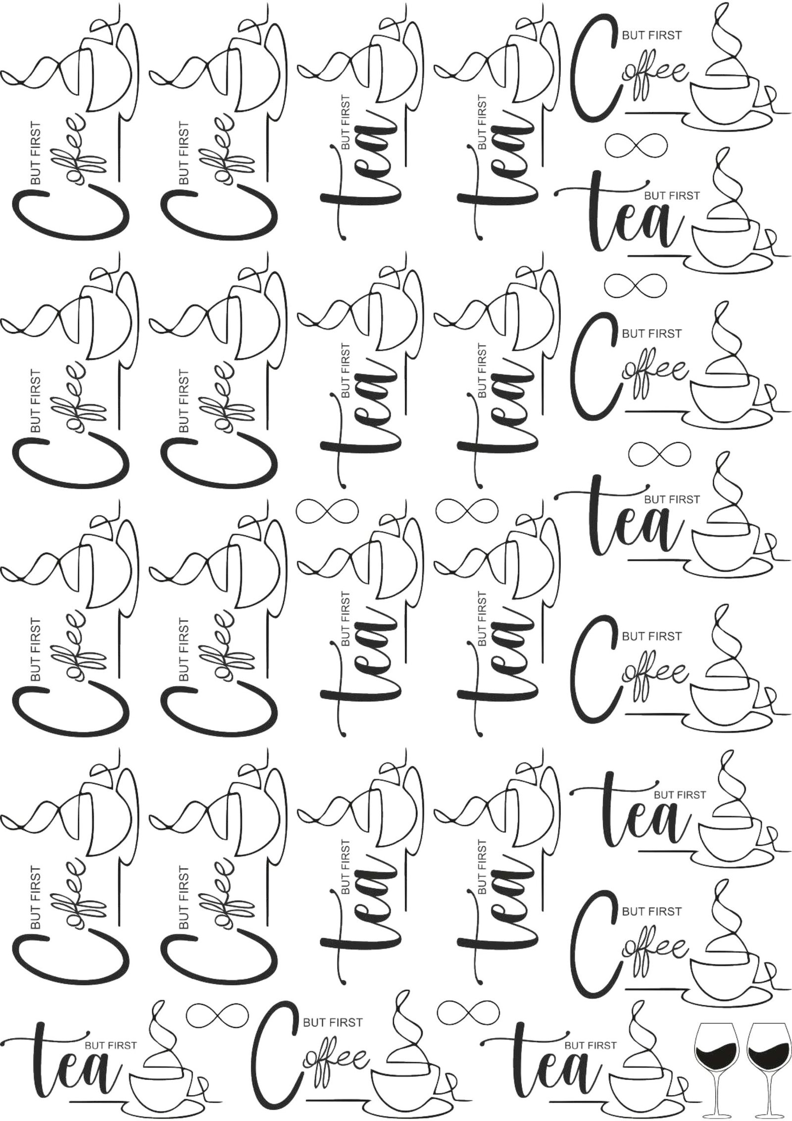 Variety: Coffee Cups, Hearts, & Birds.
