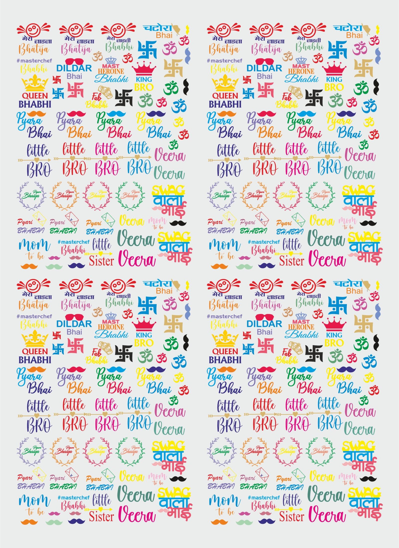 Rakhi Family Quotes & Typography UV DTF Stickers – Bhai, Bhabhi, Veera Designs